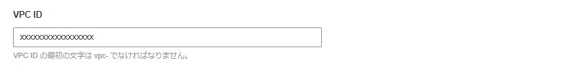④VPC IDを入力します。こちらは現時点では手入力です。