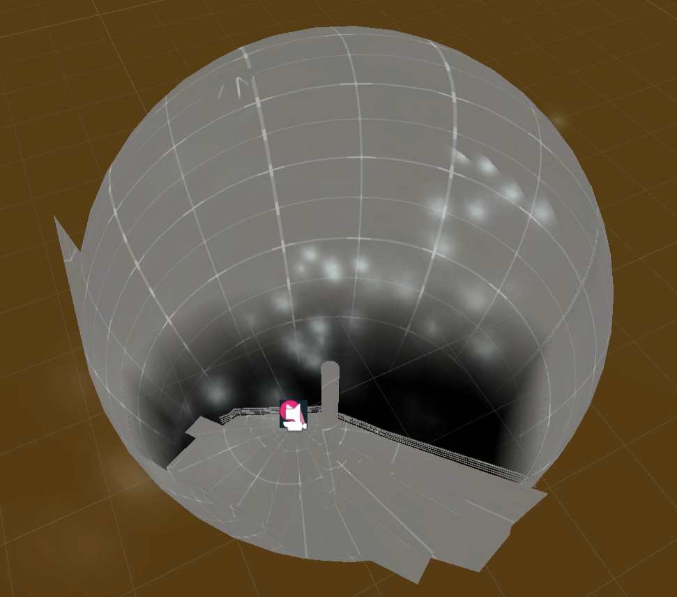 ここでは、カメラから見て近くにあるオブジェクトのみ形状を作成し、遠くにあるものは通常の全天球動画と同様に球の内側に投影しました。