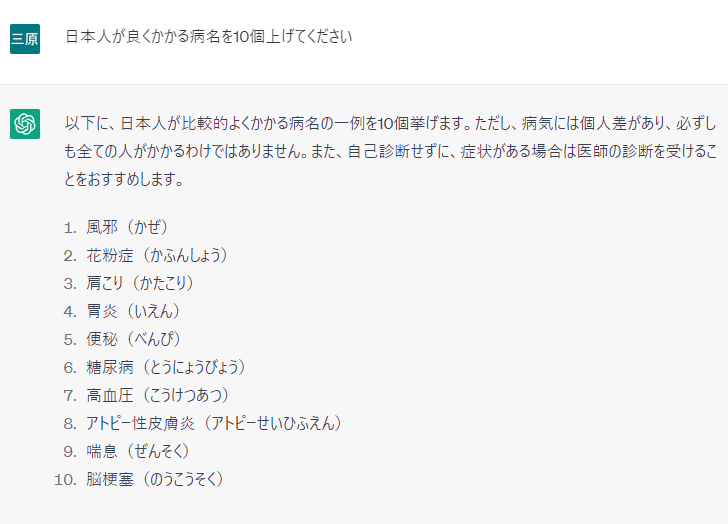 ただし、実際の現場では、患者が的確な症状を回答してくれるわけでは無く、同じ症状でも別の病気なこともあるため、現場の意見を参考にしながら、もっとプロンプトは改良していく必要がありそうです。