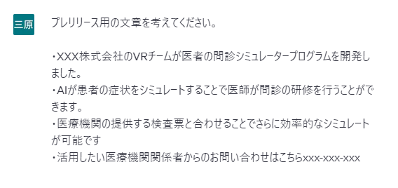 以下はChatGPTが回答してくれたプレスリリース用の文章の例です。