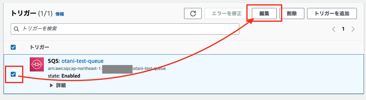 Lambda のトリガーから、[編集]ボタンをクリックし