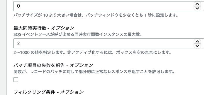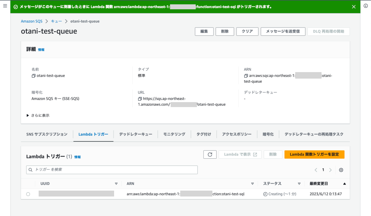 Lambda 関数ができた (コーディングはアプリチームに引き継ぎました。) ので、SQS キューを設定しました。