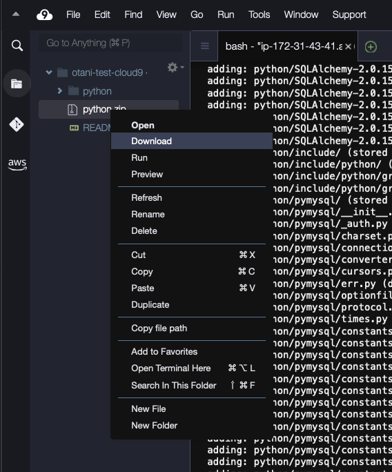 Cloud9 で SQL Alchemy と PyMySQL を pip インストールしました。