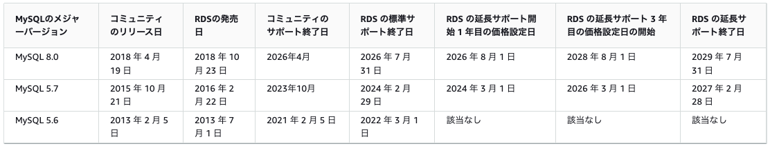 - Amazon RDS for MySQL 5.7の標準サポート終了