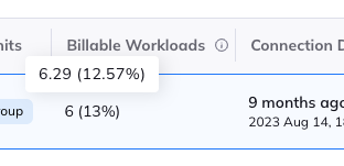 以下のテナントは 50 ワークロードでご契約いただいており、6.29 ワークロードが 50 ワークロードで割り切れないため、マウスオーバーすると小数点以下の値が表示されます。