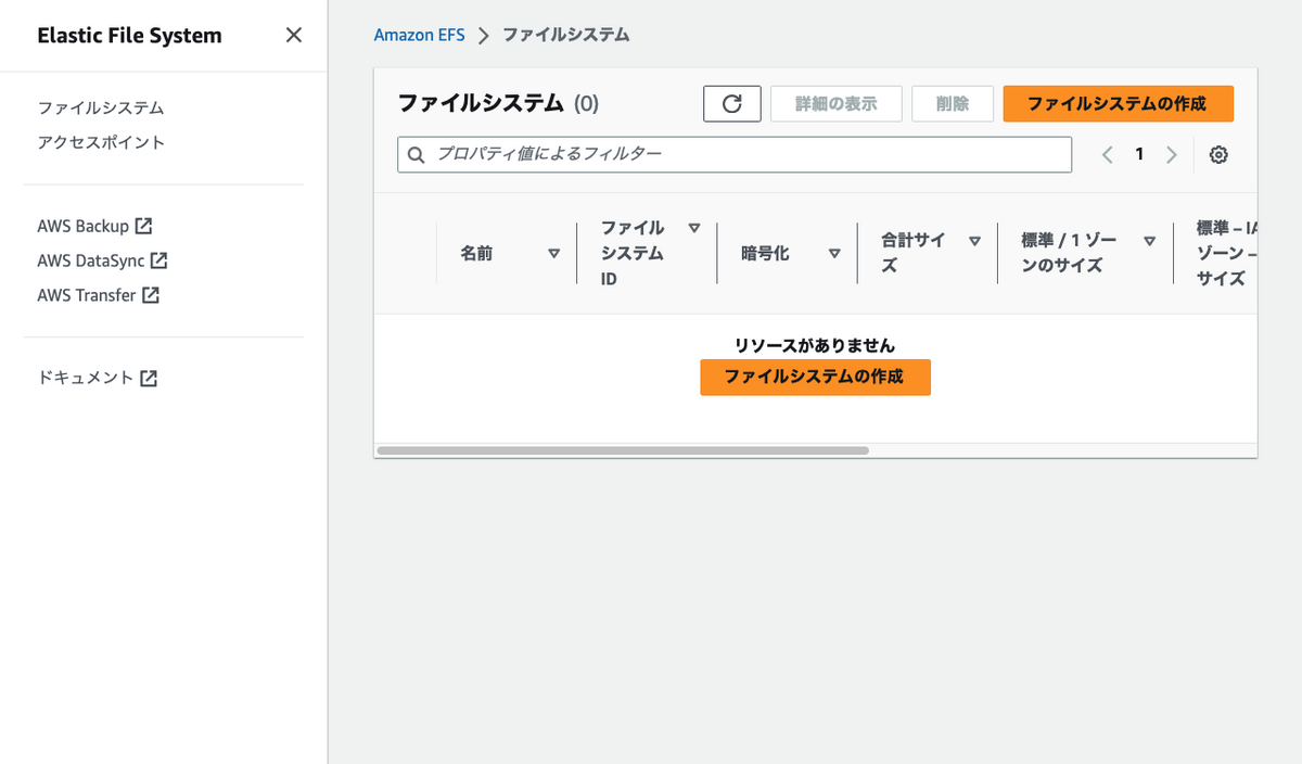 - [ファイルシステムの作成] ボタンをクリックし、