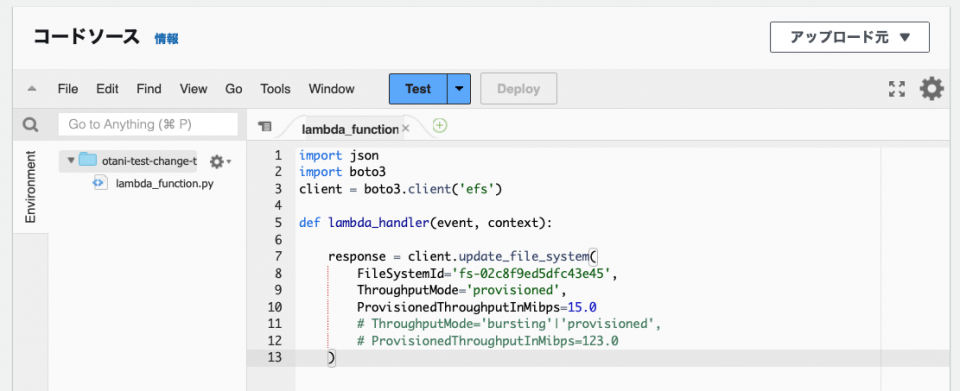 挙動が確認できたので、手動の変更作業を Lambda で再現します。