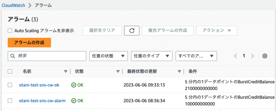 Lambda の単体検証が終わったので、次は CloudWatch アラームを設定してみます。
