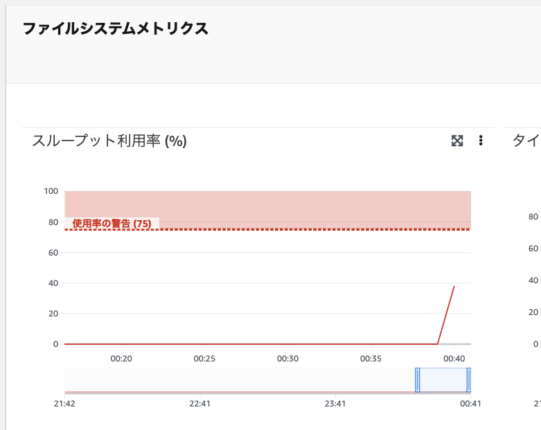 - EFS がバーストから、プロビジョニング済み (15 MiB/秒) に変わりました。