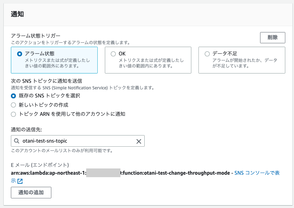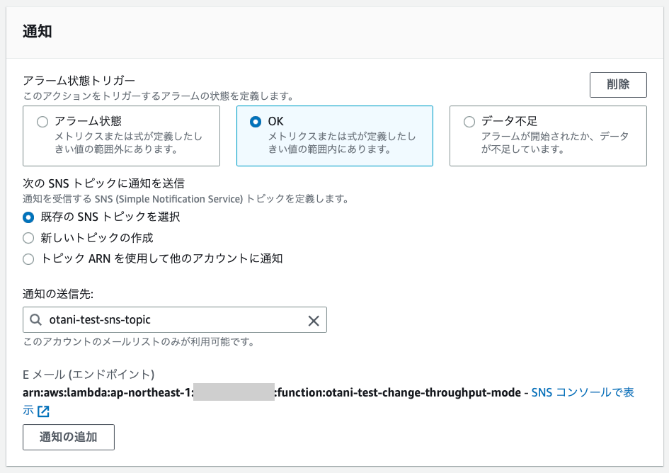 Lambda トリガーに利用する SNS トピックから作成しました。