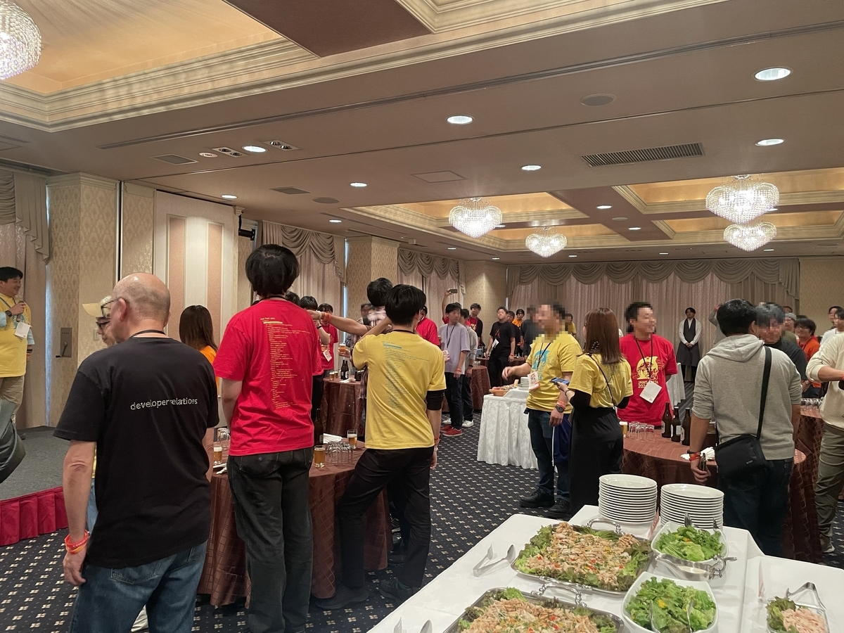 立食形式だと移動がしやすいので色んな方のテーブルにお邪魔してご挨拶や会話できるので最高なんですよね。 登壇していらっしゃった方へ話しかけに行くハードルも着席スタイルのお店より低くてこれもきっと運営の方々の粋な計らいということでしょう!!