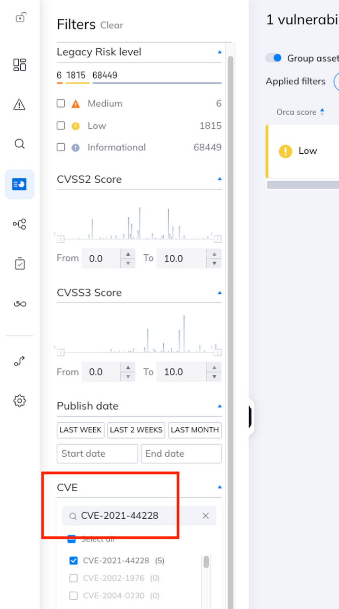 上記の手順で表示されない場合は、スキャンがまだ終わっていないか、Orca Security がその脆弱性に対応していないか、アカウント内で検知しなかったかどれかになります。