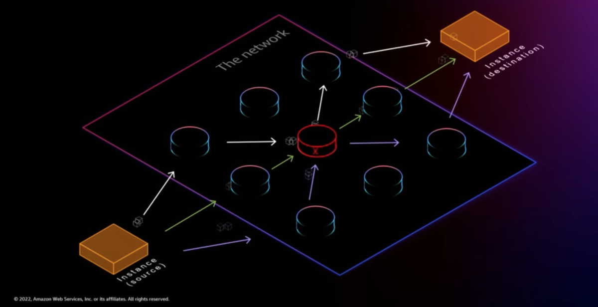 負荷の集中をいい感じに分散する仕組みが Scalable Reliable Datagram (SRD) routing で、既に Nitro システムに実装されているそうです。