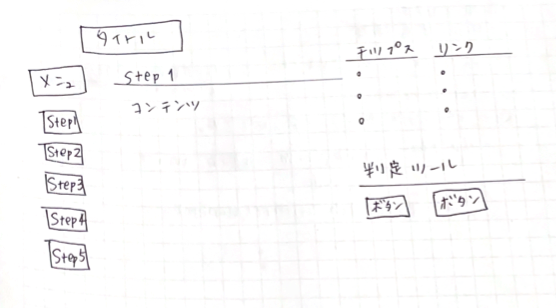 中央に進行手順のコンテンツがありまして、左側のメニューに配置されたステップで手順を切り替えできました。