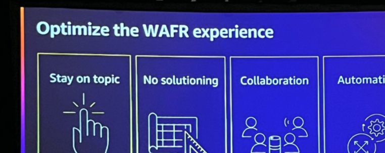 Werner も上記の表現で苦言を呈していましたが WAFR の実施可否は、成功体験を増やしてスタートしやすい環境を用意していくのが近道だといった解説がありました。 成功体験は、トレーニングツールや、専門家の意見を取り入れて効率的に進めていくのが良いという説明にも共感ができました。